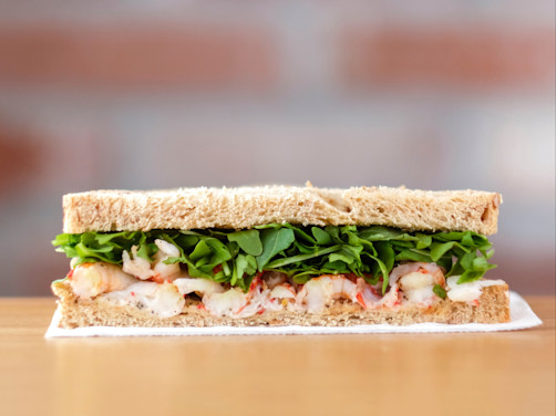 一份由野生小龍蝦及新鮮火箭菜組合而成的三文治。簡單而美味!