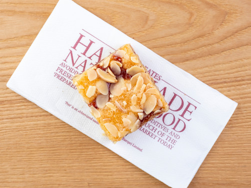 香味撲鼻的杏仁配上紅桑子果醬,精湛地放在酥皮上,滋味十足。